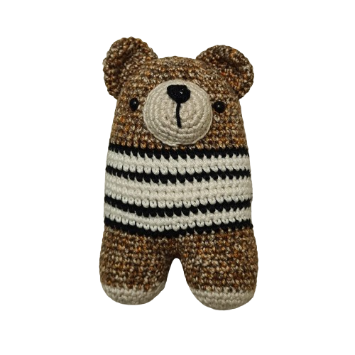 Klein knuffelbeertje gehaakt in neutrale warme kleuren